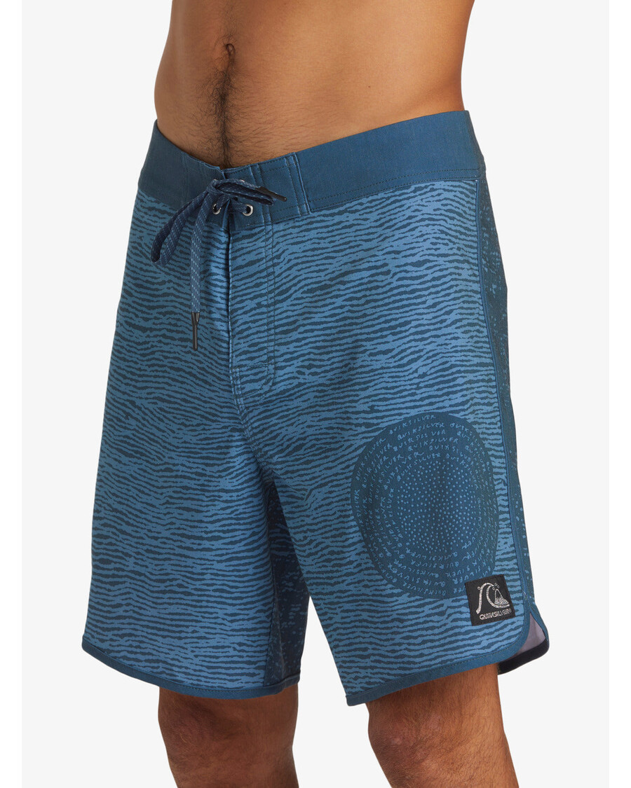 step up your surf style with quiksilver's og scallop blank canvas 18" boardshorts from the alex kopps collection. made of organic cotton and recycled polyester with 4-way stretch, these scalloped surf trunks feature a performance fly, drawcord closure, back flap pocket, and exclusive collection artwork. featured here in the midnight navy colorway.