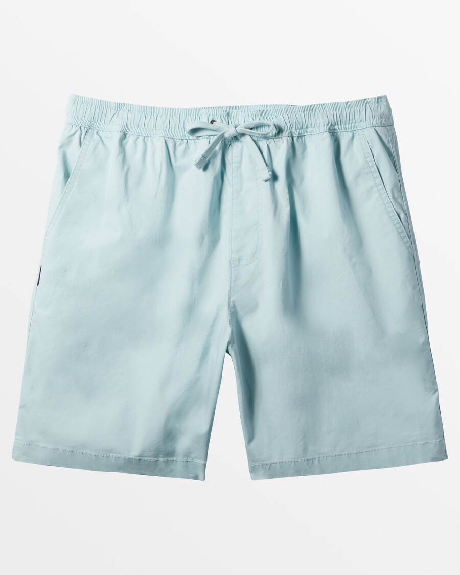 easy to wear and always looking good, quiksilver's taxer shorts are crafted from a cotton poplin fabric with added stretch for live-in comfort. in new prints and colors, these men's volley shorts have a straight fit, elasticized waist, and drawcord closure. plus, front slash and back pockets for added convenience. featured here in the cloud blue colorway.